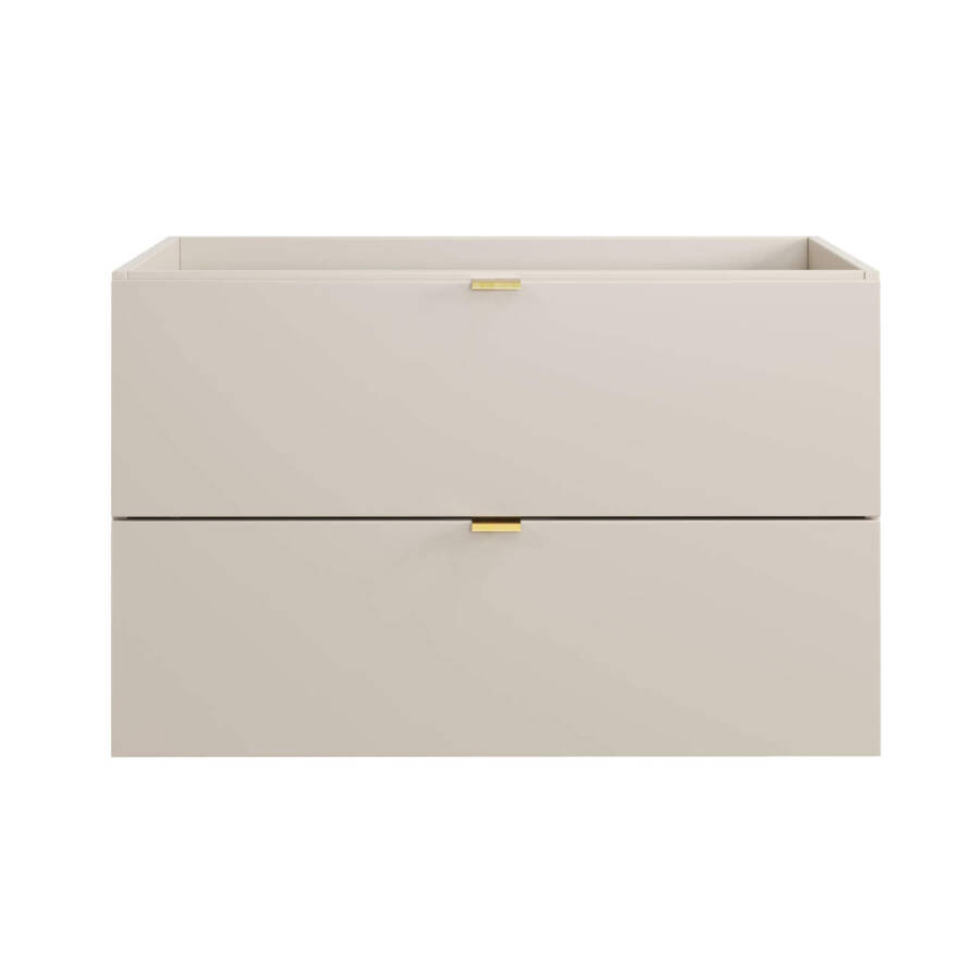 Meble łazienkowe Dalia Kaszmir to elegancka kolekcja mebli łazienkowych w modnym kolorze kaszmir, stworzona do jasnych i przytulnych aranżacji wnętrz. Kaszmirowe meble łazienkowe Dalia łączą delikatną kolorystykę z naturalnym dekorem drewna, nadając łazience harmonijny i nowoczesny charakter.