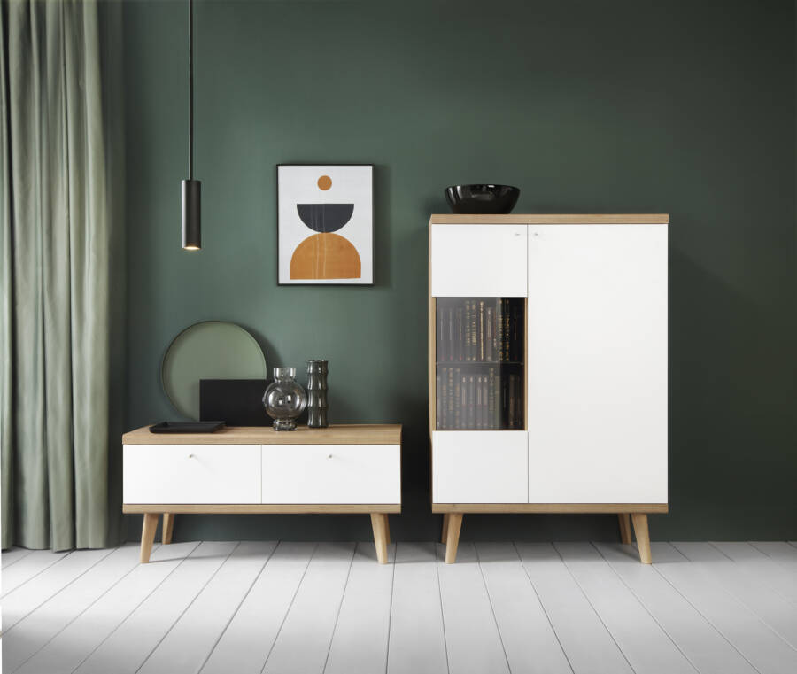 Jej minimalistyczny design i uniwersalna kolorystyka sprawiają, że komoda doskonale wpasuje się w każde wnętrze, dodając mu elegancji i nowoczesnego charakteru. To nie tylko praktyczny mebel, ale również stylowy element dekoracyjny Twojego salonu, sypialni czy przedpokoju.