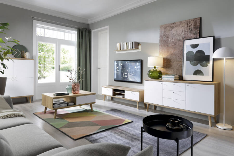 Napisz pierwszą opinię o „Komoda 4-drzwiowa biały mat/dąb riviera 107x134x40 cm”