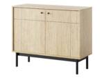 Elegancka komoda, która wprowadzi do Twojego wnętrza nowoczesny i stylowy akcent. Wykonana z wysokiej jakości płyty laminowanej w kolorze dąb linea, komoda emanuje naturalnym ciepłem drewna, a jednocześnie cechuje się minimalistycznym, nowoczesnym wyglądem. Solidne, drewniane nóżki malowane na czarno dodają jej lekkości i nowoczesnego charakteru.