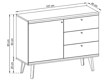 Wprowadź do swojego wnętrza powiew nowoczesnego designu z elegancką komodą o wymiarach 107 cm szerokości, 83 cm wysokości i 40 cm głębokości. Komoda została wykonana z wysokiej jakości płyty laminowanej, co gwarantuje trwałość i odporność na codzienne użytkowanie.