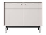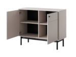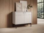 Elegancka komoda, która wprowadzi do Twojego wnętrza nowoczesny i stylowy akcent. Wykonana z wysokiej jakości płyty laminowanej w kolorze kaszmirowym, komoda emanuje naturalnym ciepłem drewna, a jednocześnie cechuje się minimalistycznym, nowoczesnym wyglądem. Solidne, drewniane nóżki malowane na czarno dodają jej lekkości i nowoczesnego charakteru.