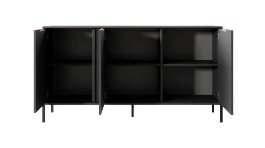 Komoda jest stabilna, praktyczna i niezwykle stylowa. Jej smukłe nogi z metalu podkreślają nowoczesny charakter mebla, jednocześnie zapewniając stabilność. Świetnie sprawdzi się zarówno w salonie, jadalni, sypialni, jak i w przedpokoju.