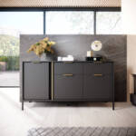 Ta nowoczesna komoda w kolorze antracytowym to doskonały wybór dla każdego, kto szuka stylowego i funkcjonalnego mebla do swojego wnętrza. Dzięki minimalistycznemu designowi i złotym metalowym uchwytom, komoda idealnie wpisuje się w trendy nowoczesnych i eleganckich aranżacji.