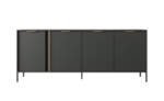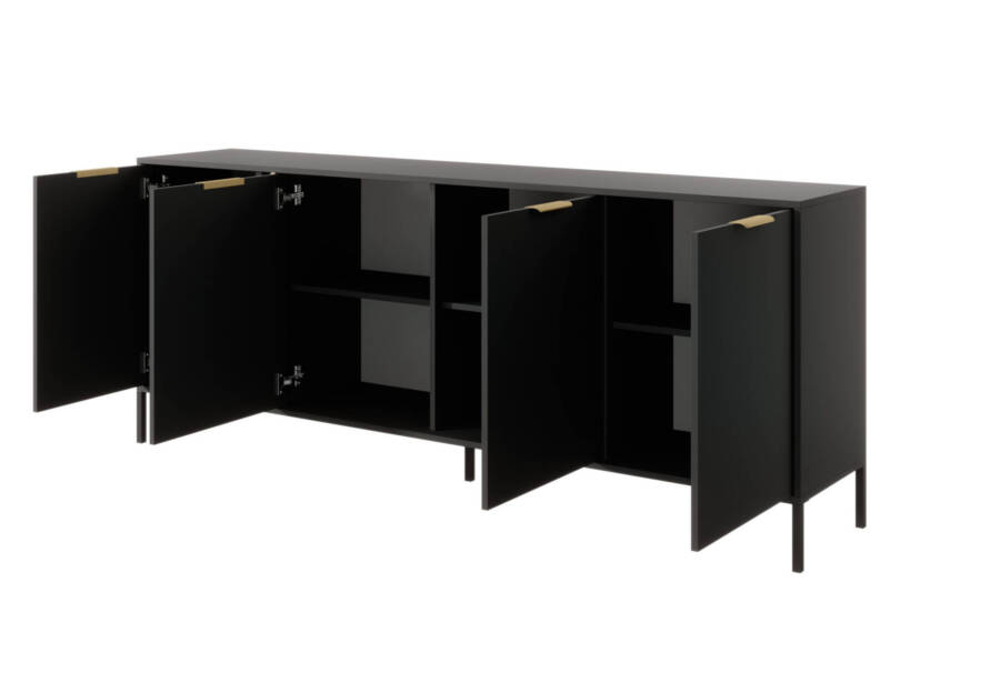 Nowoczesne, smukłe nóżki komody zapewniają stabilność, jednocześnie nadając meblowi lekkości. Jej imponująca szerokość sprawia, że jest to idealny wybór do większych przestrzeni, oferując dużo miejsca do przechowywania, bez rezygnacji z nowoczesnego stylu.