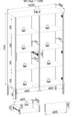Ta elegancka witryna to doskonałe połączenie nowoczesnego designu i funkcjonalności, które podkreśli charakter Twojego wnętrza. Z wysokością 165,5 cm, szerokością 103,5 cm i głębokością 39 cm, zapewnia wystarczająco dużo miejsca do przechowywania i eksponowania Twoich ulubionych przedmiotów.