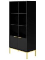 Regał czarny ze złotymi nóżkami to elegancki i wyrazisty mebel, który łączy nowoczesną formę z luksusowym akcentem kolorystycznym. Głęboka, czarna bryła zestawiona ze złotymi metalowymi nóżkami tworzy efektowną i ponadczasową kompozycję, idealną do wnętrz urządzonych w stylu nowoczesnym, modern classic, glamour, a także minimalistycznym z wyraźnym akcentem dekoracyjnym.