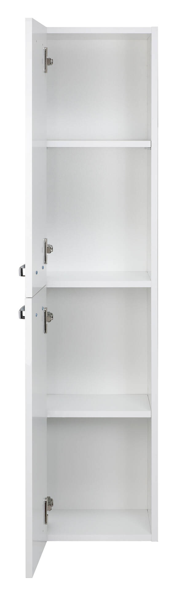 Słupek o szerokości 30 cm to doskonały wybór dla osób poszukujących mebla, który łączy estetykę i praktyczne zastosowanie. Wyposażony w dwoje drzwi otwieranych za pomocą chromowanych uchwytów, zapewnia wygodny dostęp do wnętrza. Drzwi można zamontować jako prawe lub lewe, co pozwala dopasować mebel do indywidualnych potrzeb użytkownika. Wewnątrz znajdują się dwie półki z regulacją wysokości, które ułatwiają przechowywanie kosmetyków, ręczników i akcesoriów łazienkowych. System soft close gwarantuje ciche i płynne zamykanie drzwi, zwiększając komfort codziennego użytkowania.