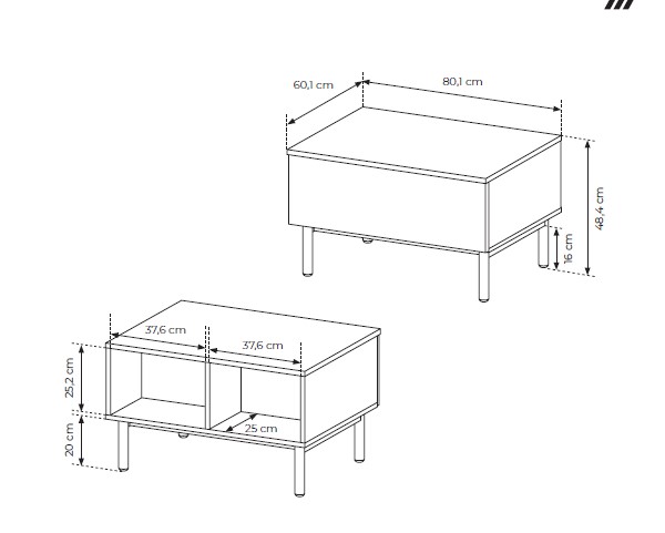 Stolik wyposażony jest w pojemną szufladę, która zapewnia miejsce na przechowywanie drobnych przedmiotów, takich jak piloty, magazyny czy książki, dzięki czemu zawsze będą pod ręką. Konstrukcja stolika jest solidna i stabilna, co gwarantuje jego trwałość przez wiele lat użytkowania.