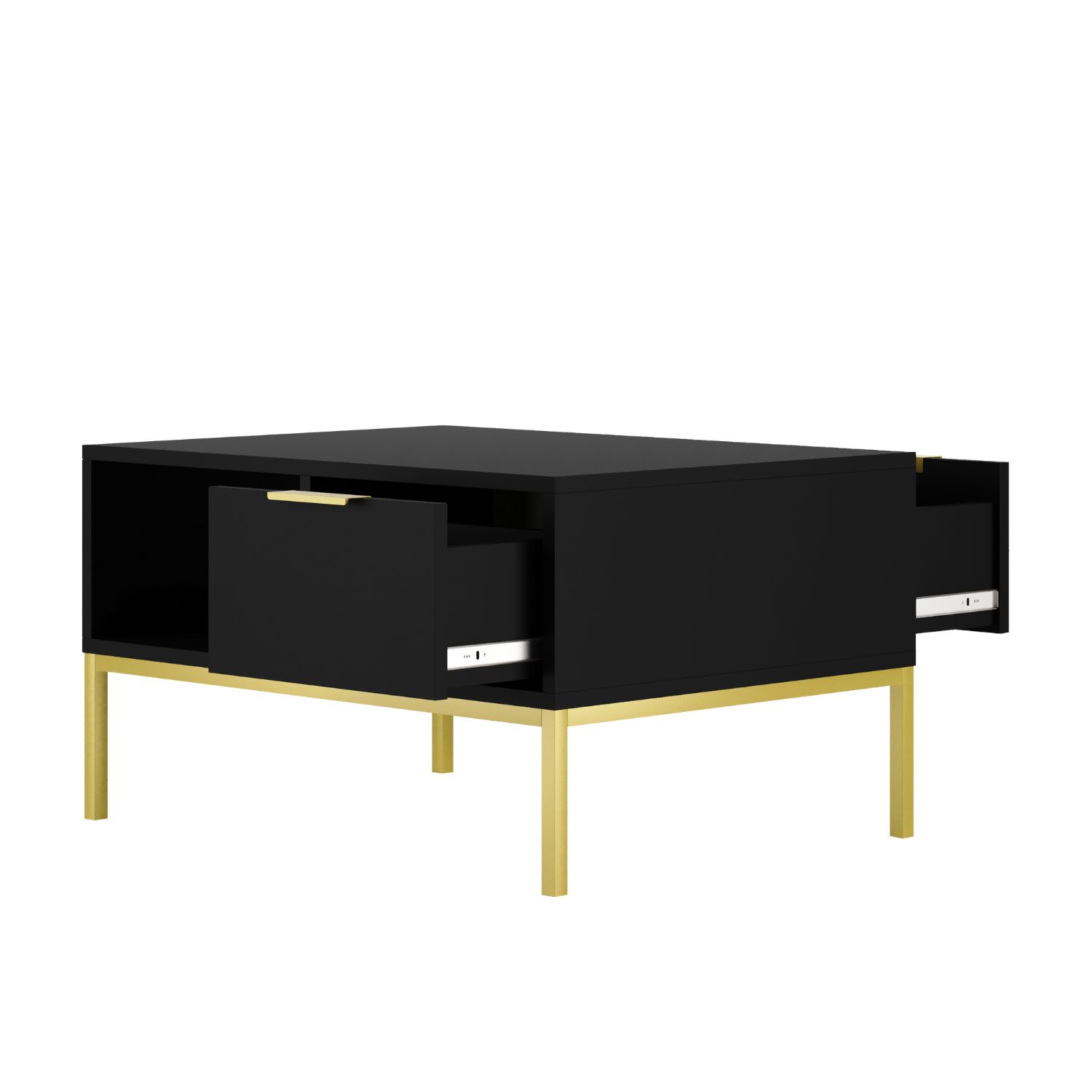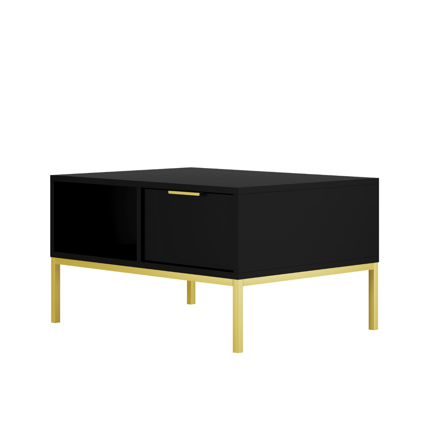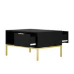 Stolik kawowy czarny ze złotymi nogami nowoczesny 80 cm z półką i szufladą