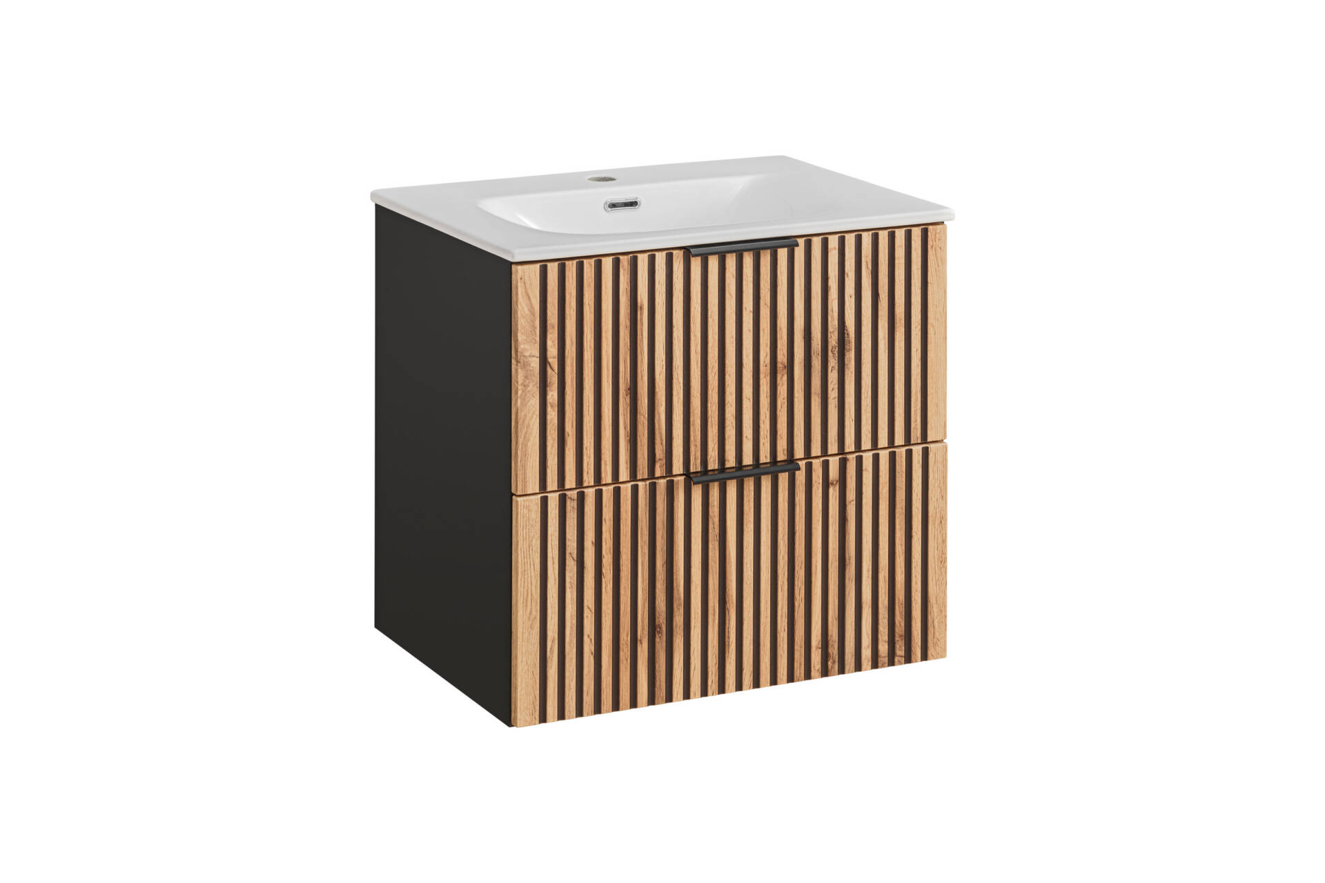 Szafka łazienkowa 60cm z umywalką lamele dąb wotan ceramiczna