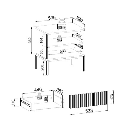 ✨ Nowoczesna szafka nocna o szerokości 53 cm w kolorze kaszmir to praktyczny i elegancki mebel do sypialni. Wyposażona w szufladę z ryflowanym frontem oraz otwartą półkę, idealnie łączy funkcjonalność z modnym designem.