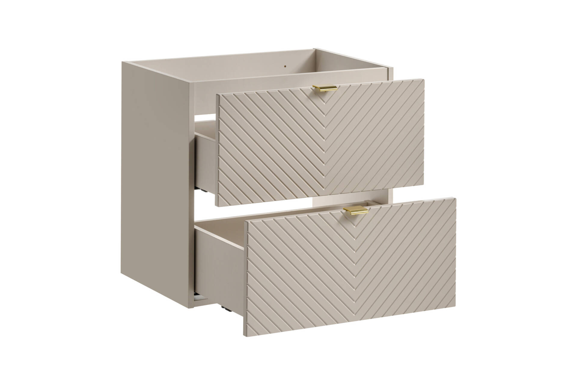 Szafka pod umywalkę 60 cm 2-szufladowa – kaszmirowy mat, frez w jodełkę