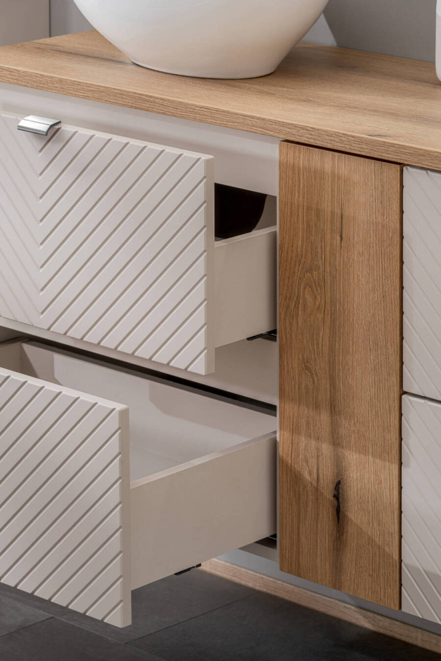 Szafka pod umywalkę 80 cm 2-szufladowa – kaszmirowy mat, frez w jodełkę