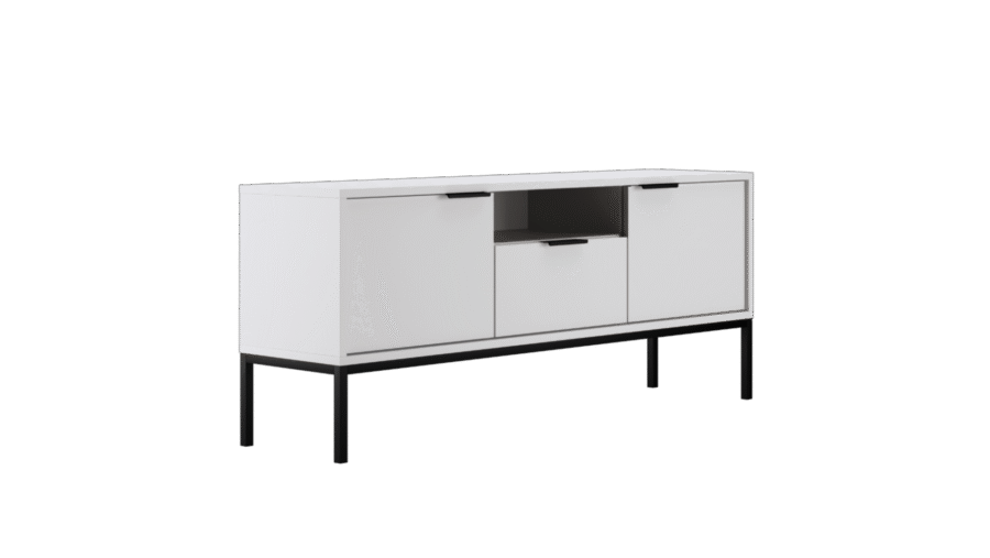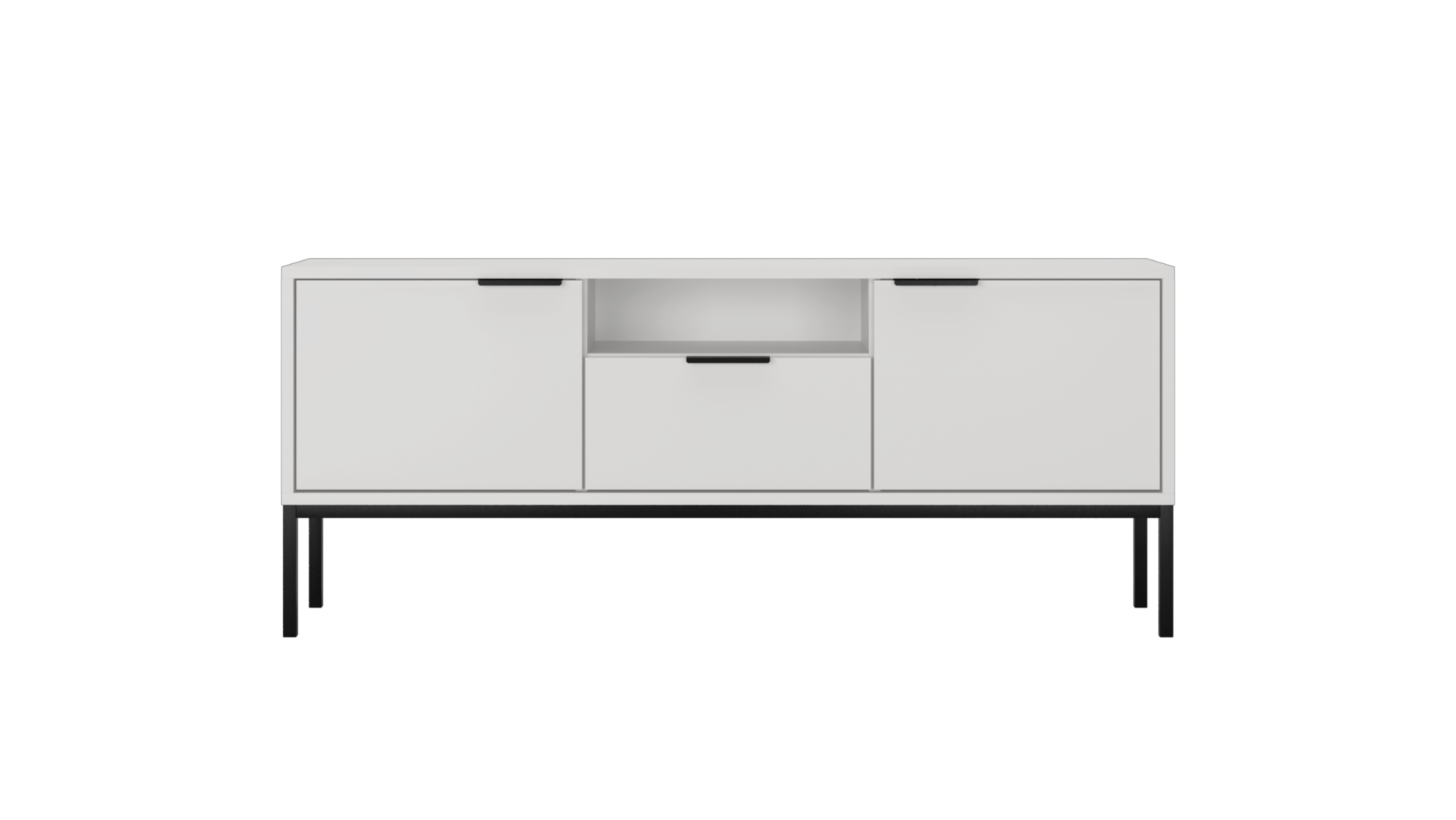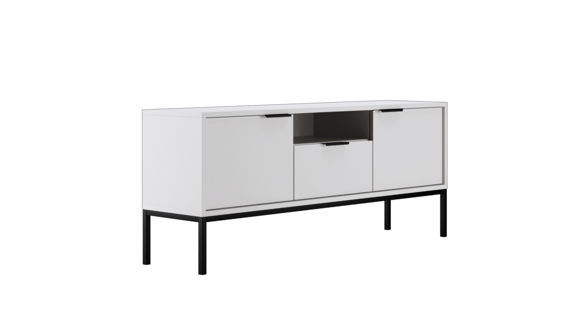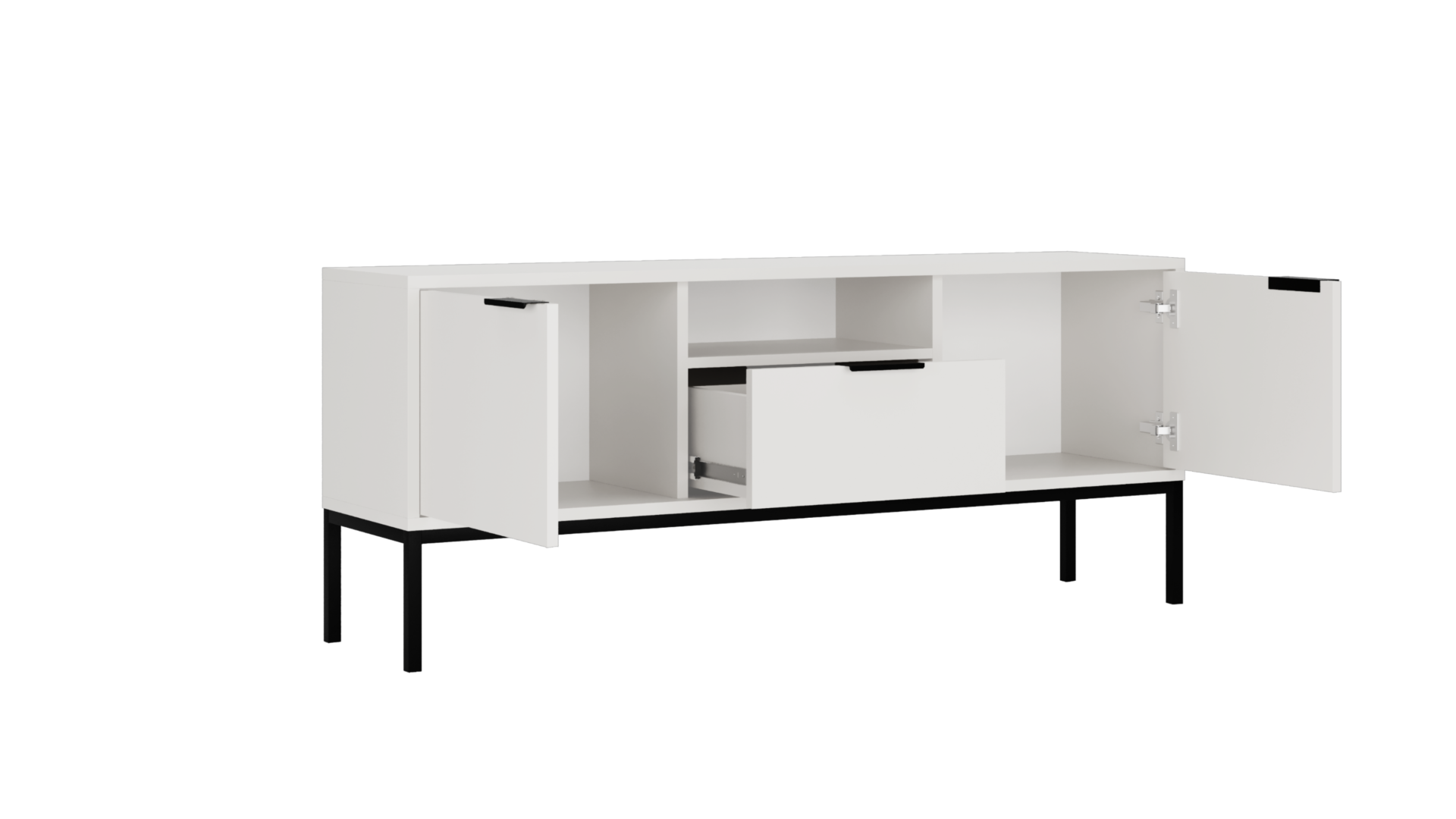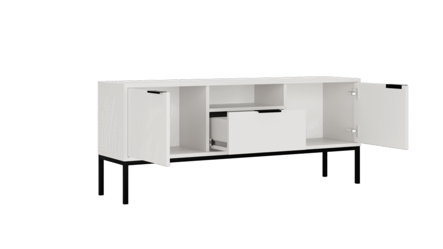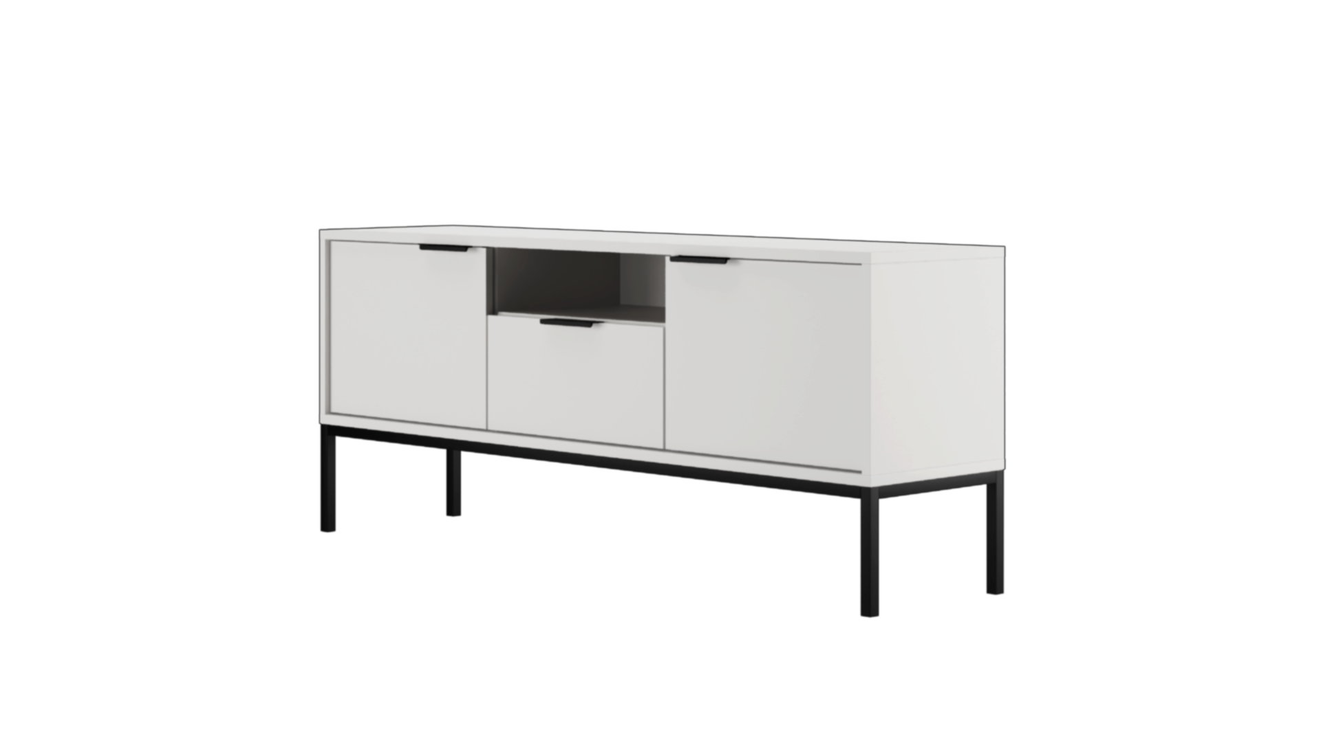 Szafka RTV 135 cm biała czarny stelaż nowoczesna Austin