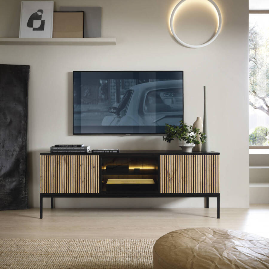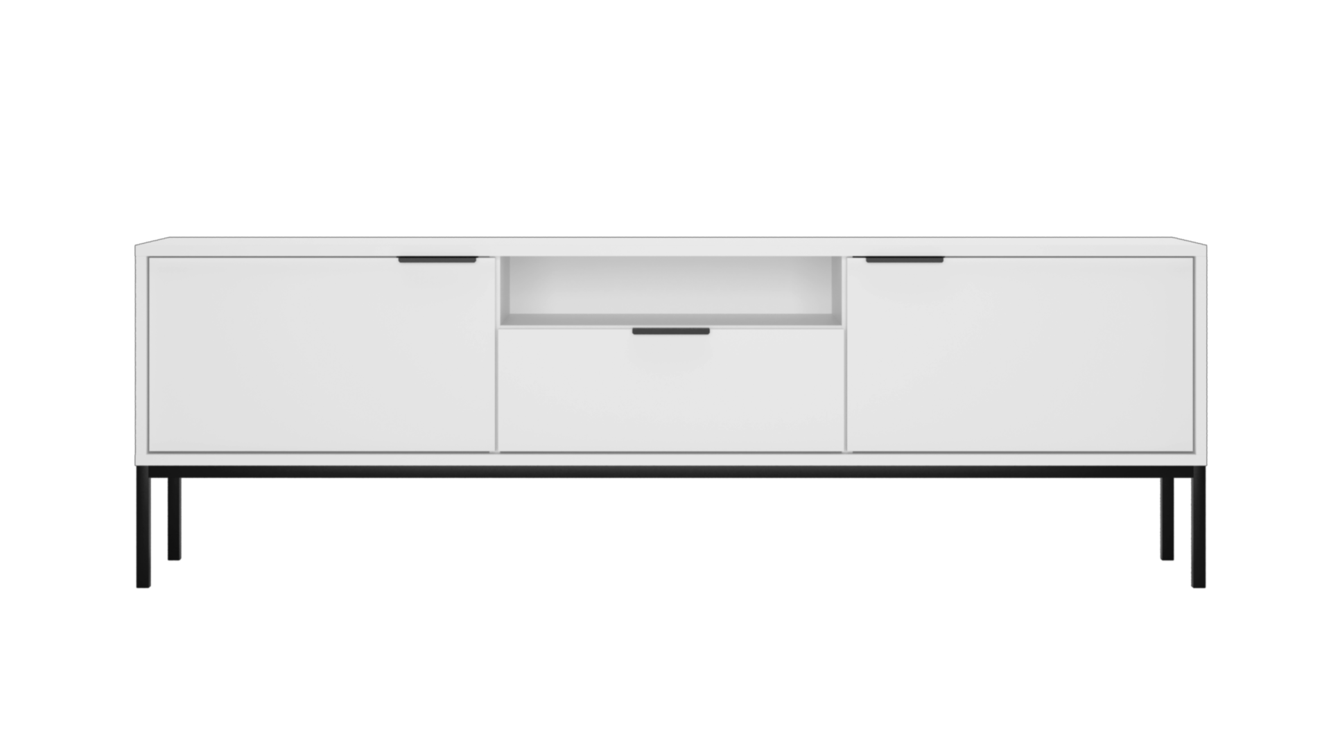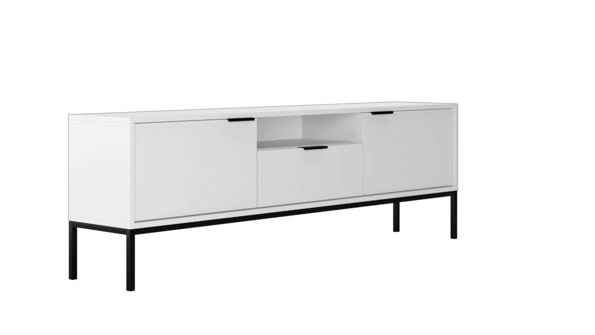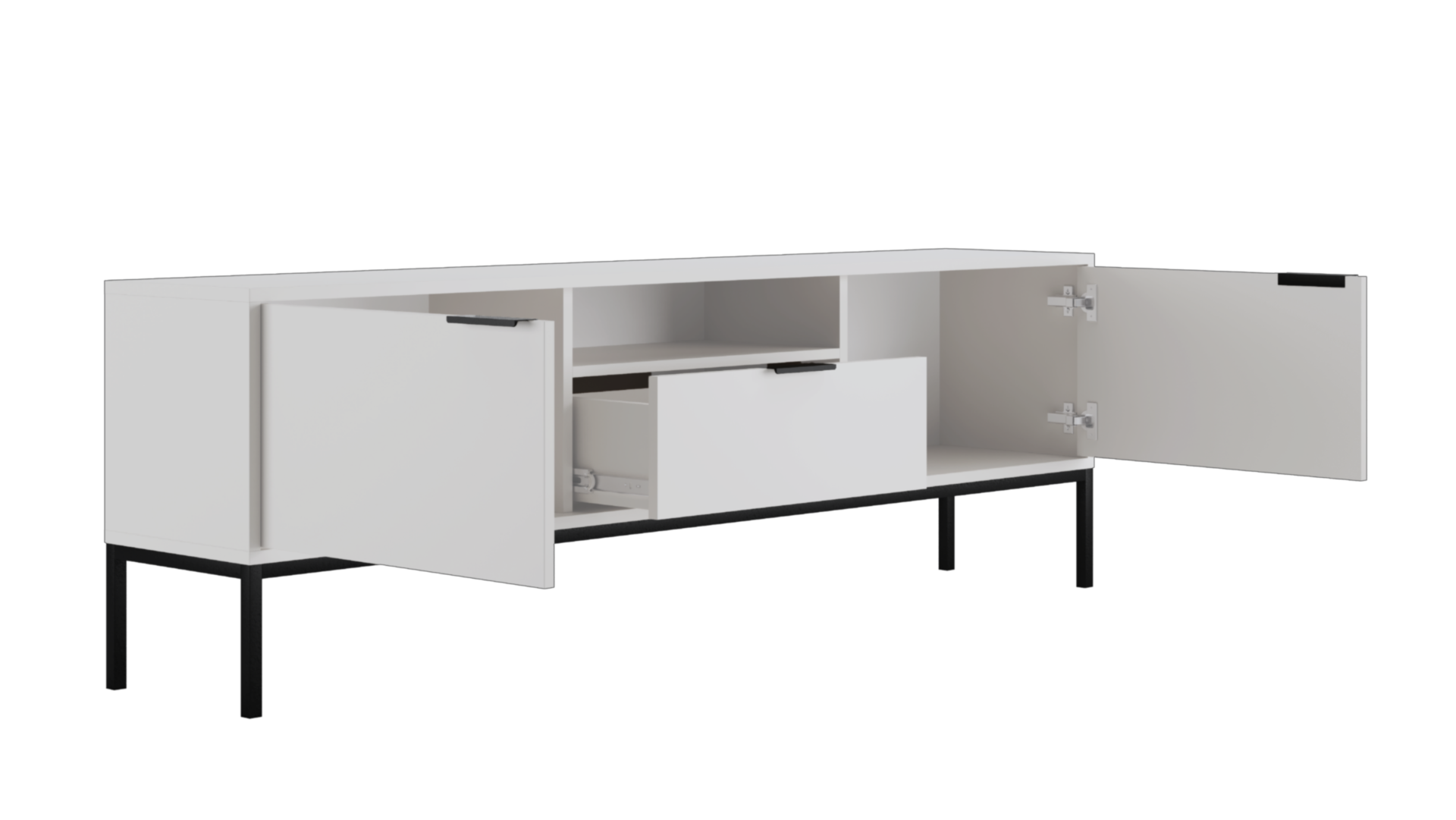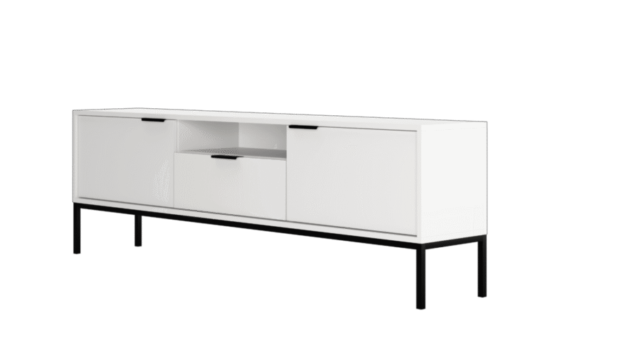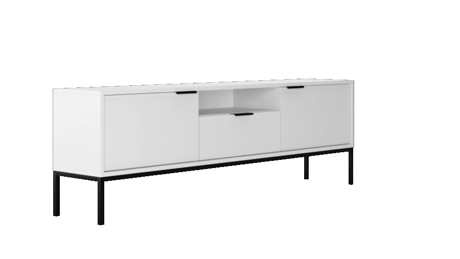 Szafka RTV 175 cm biała czarny stelaż nowoczesna Austin