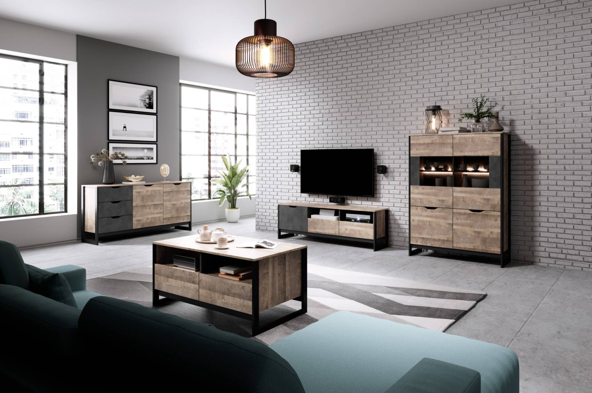 - Przestronne wnęki na sprzęt RTV oraz zamykane szafki zapewniające dużo miejsca do przechowywania.