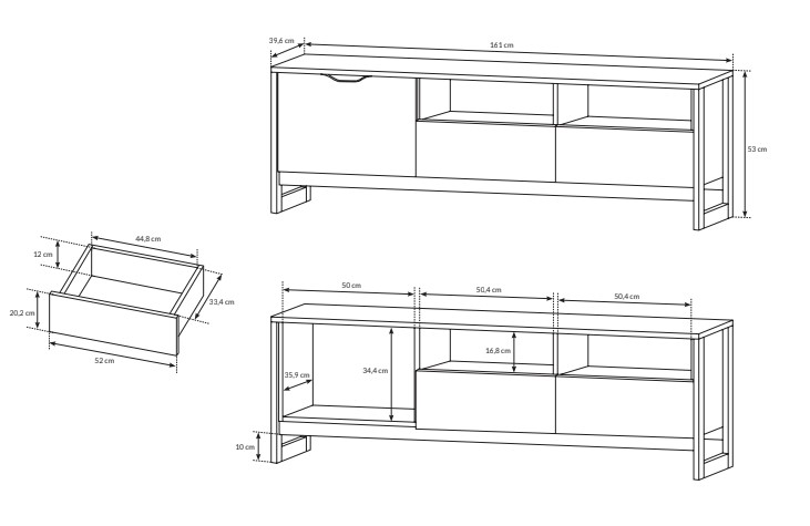 - Wykonana z solidnej płyty meblowej, odpornej na zarysowania i łatwej do utrzymania w czystości.