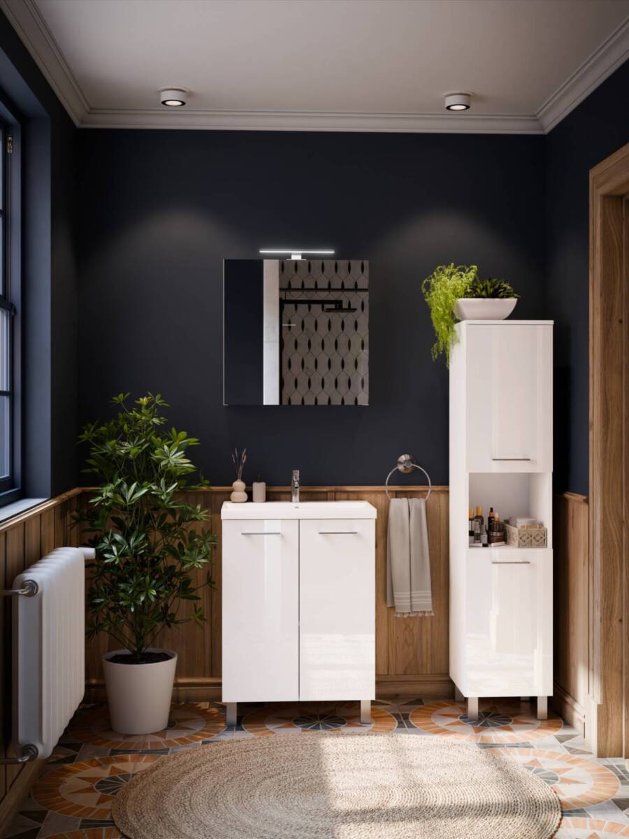 Napisz pierwszą opinię o „Zestaw łazienkowy 50 cm biały połysk z umywalką i szafką na nogach”