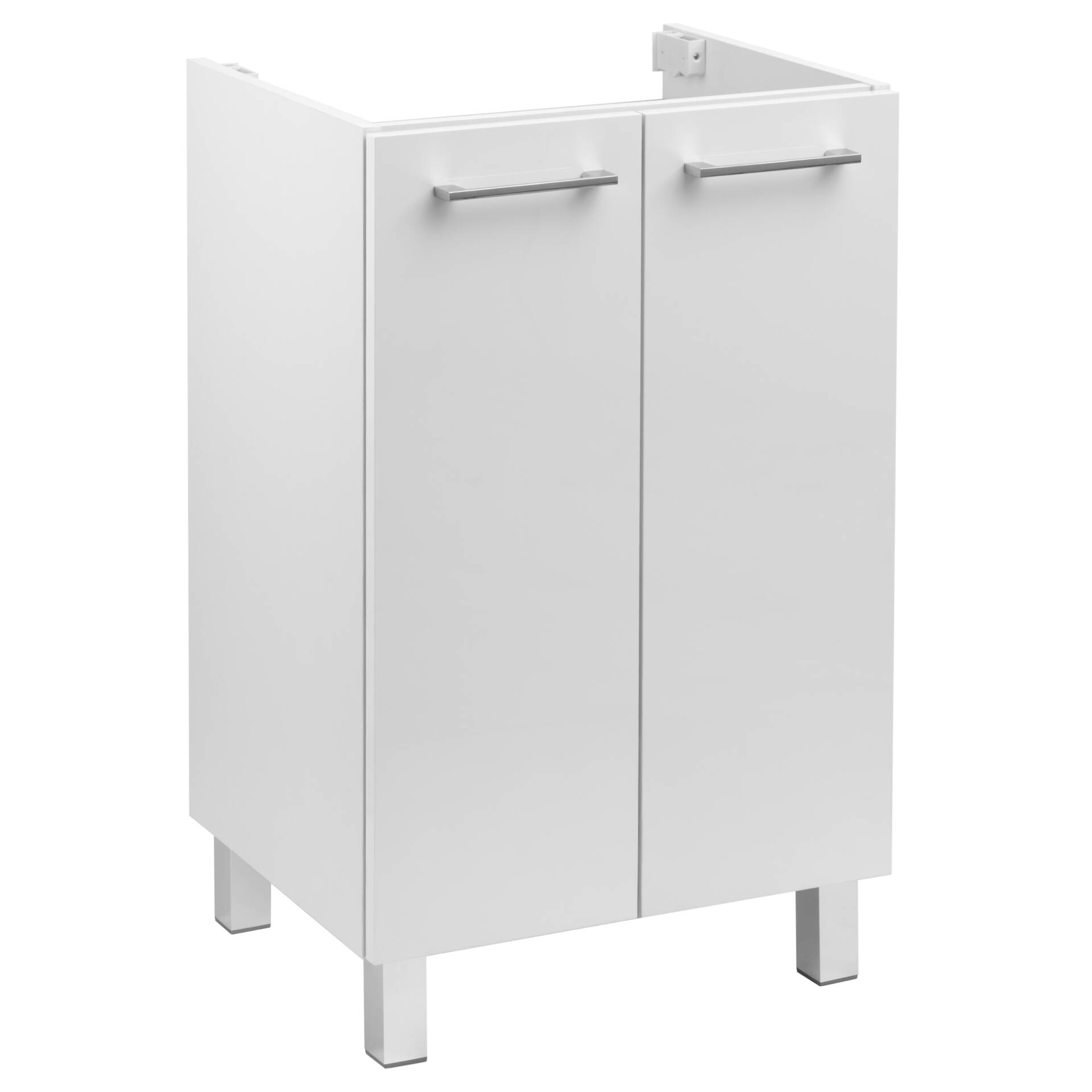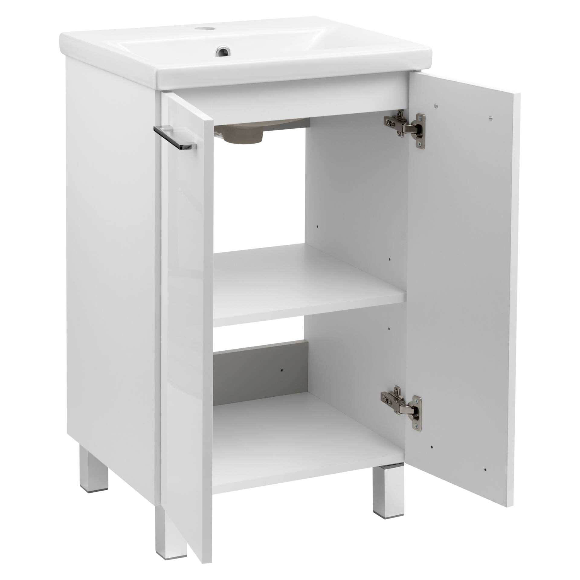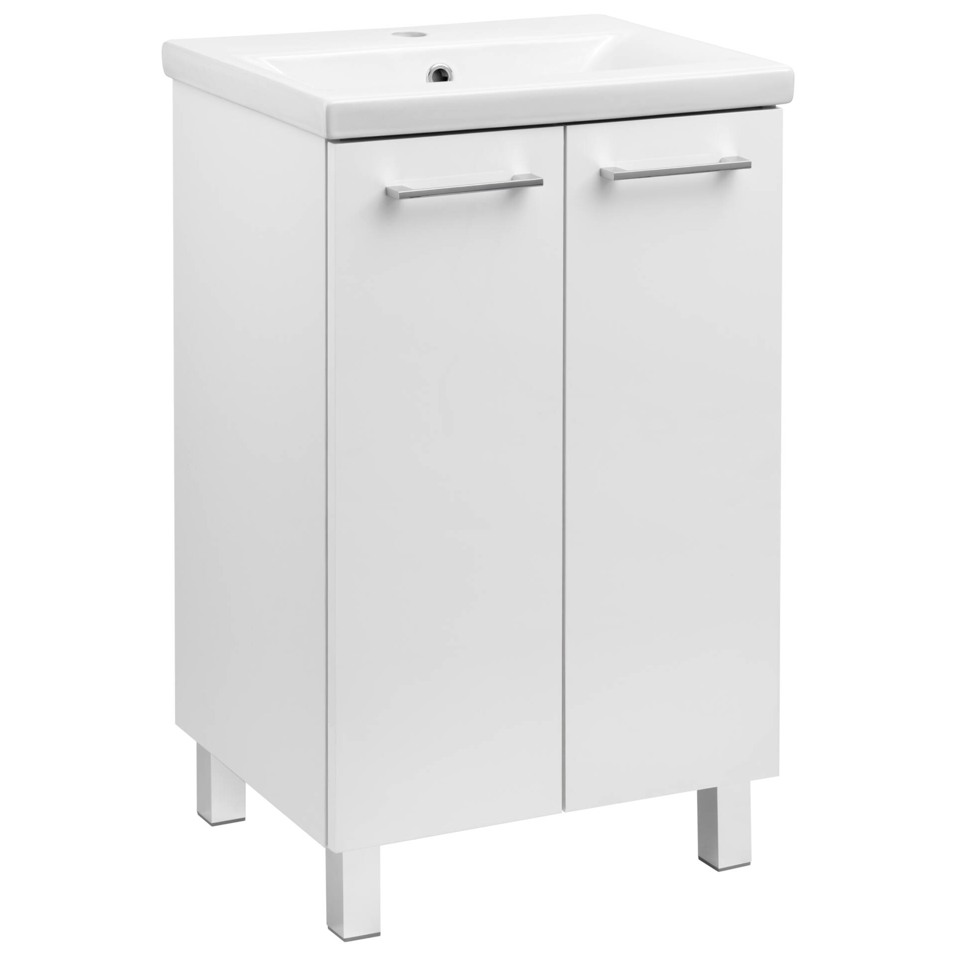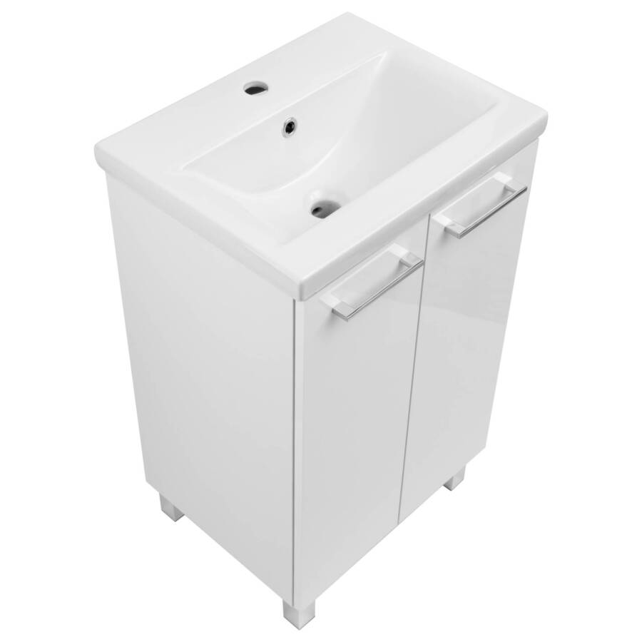 Zestaw łazienkowy 50 cm biały połysk z umywalką i szafką na nogach