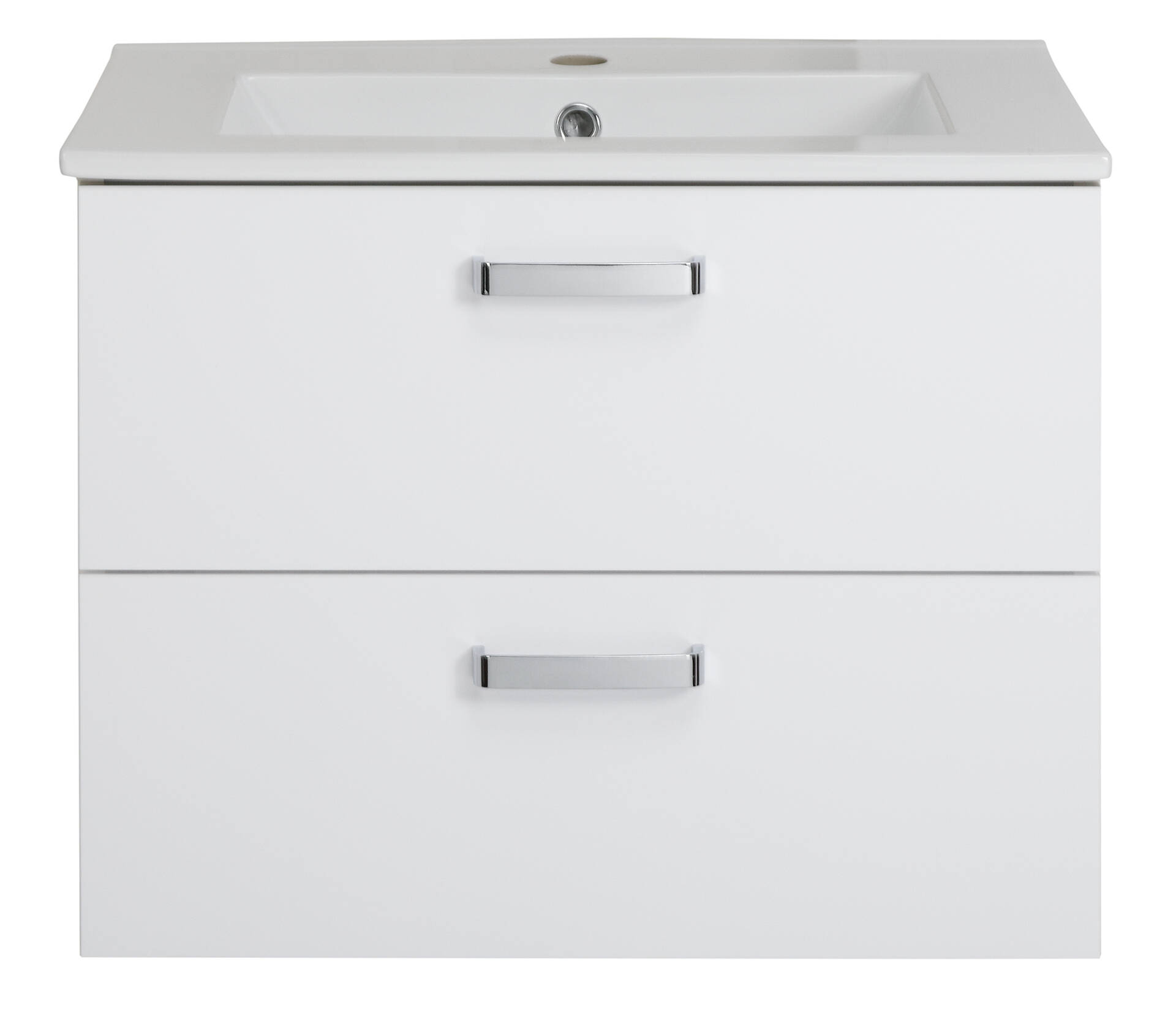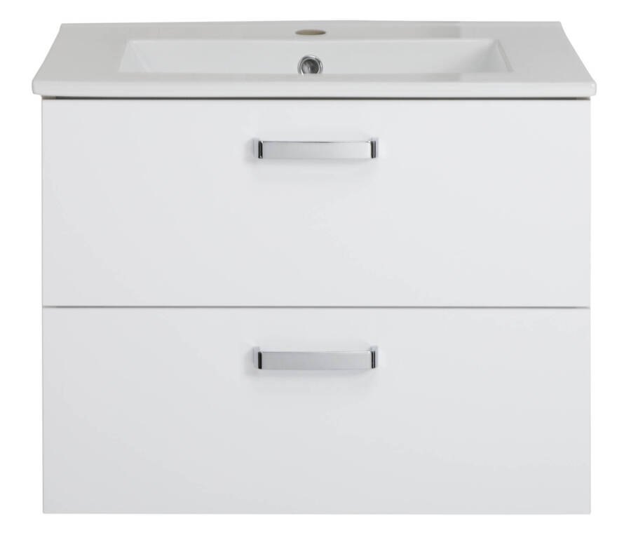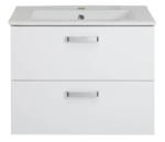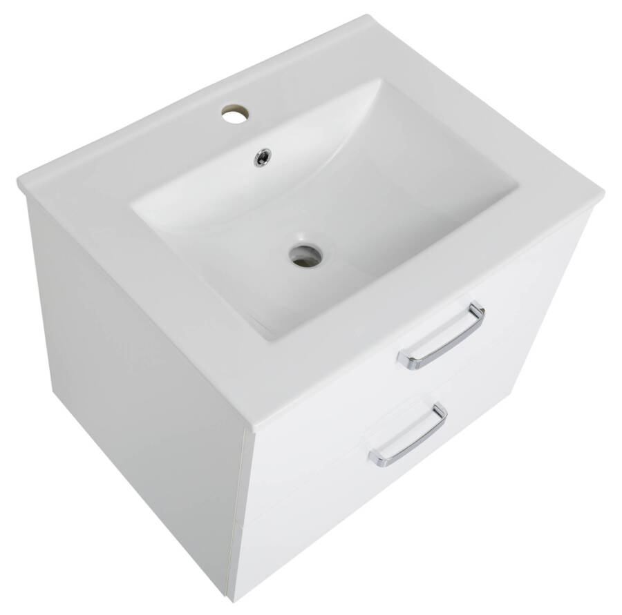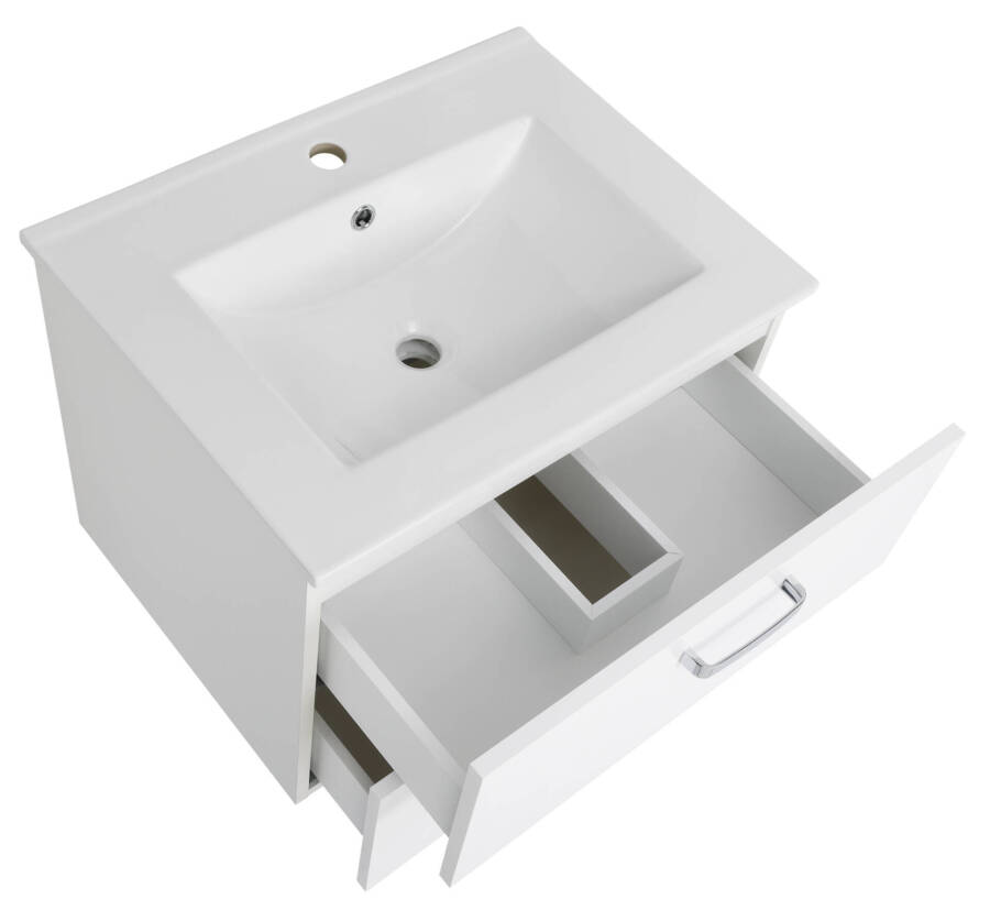 Zestaw o szerokości 60 cm składa się z ceramicznej umywalki Asus oraz szafki pod umywalkę wyposażonej w dwie pojemne szuflady. Umywalka posiada ergonomiczny kształt misy oraz wygodną powierzchnię odkładczą na kosmetyki i akcesoria. Szafka zapewnia komfort przechowywania, a w górnej szufladzie zamontowano estetyczną przegrodę, która chroni przechowywane przedmioty przed kontaktem z syfonem. Zestaw wyróżnia się eleganckim wykończeniem i kompaktową formą, dzięki czemu idealnie sprawdza się w każdej łazience.