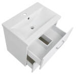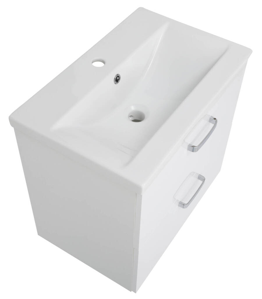 Zestaw o szerokości 60 cm składa się z ceramicznej umywalki Iris oraz szafki pod umywalkę z dwiema pojemnymi szufladami. Umywalka wyróżnia się ergonomicznym kształtem misy oraz praktyczną powierzchnią odkładczą na codzienne akcesoria. Szafka zapewnia wygodę przechowywania kosmetyków i środków higienicznych, a dzięki niewielkiej głębokości doskonale sprawdzi się nawet w mniejszych łazienkach.