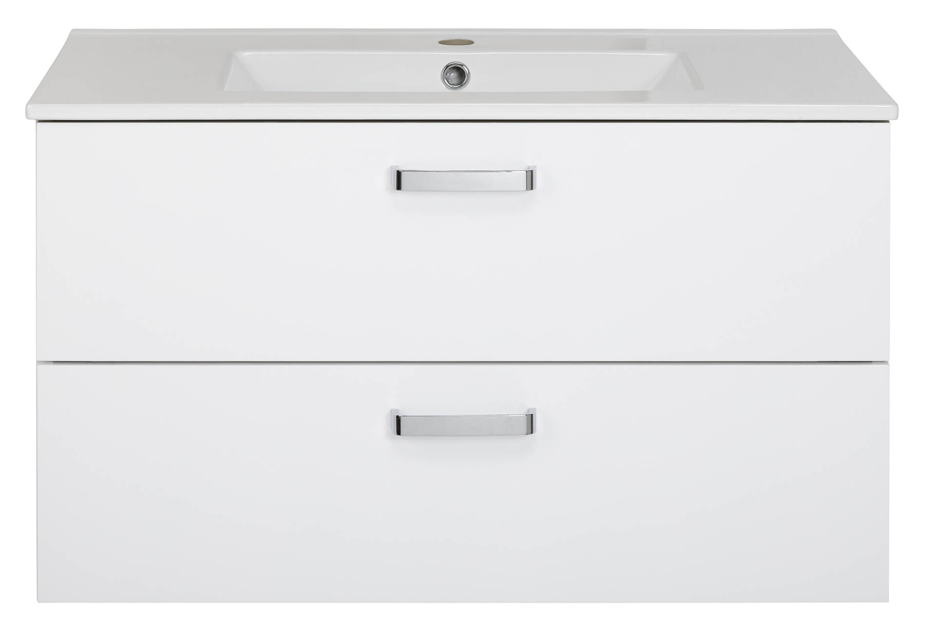 Zestaw łazienkowy 80 cm biały połysk z umywalką ceramiczną i szafką z szufladami